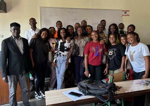 Auf Einladung von Herrn N'Valy Condé, Professor für Erkenntnistheorie, Psychopädagogik und Philosophie an der Kofi-Annan-Universität in Conakry, konnte ich an einer seiner Psychologievorlesungen zur Vorbereitung auf den Bachelor-Abschluss teilnehmen.