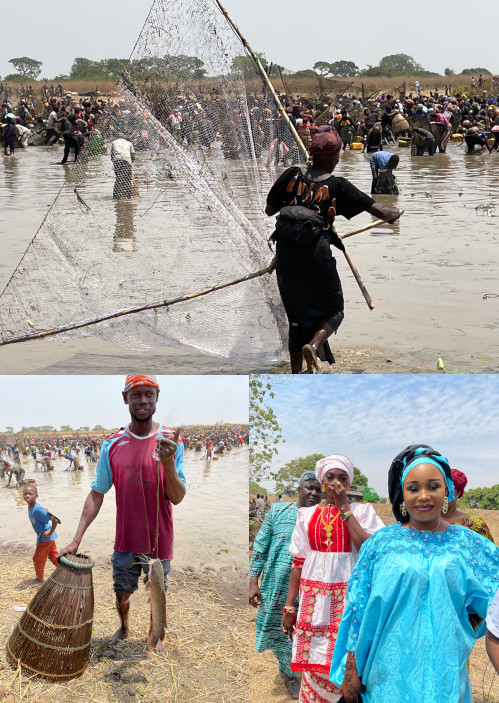 Zuerst wird im Dorf unter den Mangobäumen mit der Condé-Maske, Musikern und Unterhaltung für Groß und Klein gefeiert, und dann schnappen sich alle ihre Netze und Fischfallen und machen sich auf den Weg zum Teich.