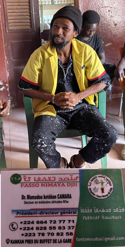 Die meisten unserer guineischen Freunde, selbst der junge Unterpräfekt, greifen auf traditionelle Heilmittel zurück, um sich selbst zu behandeln (Malaria, Migräne, Wunden und Abszesse, Fieber, Rheuma, Unfruchtbarkeit, ...).
